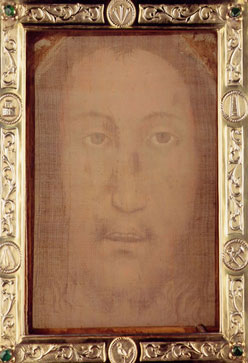 La sindone che è il sudario in cui era avvolto Gesù è custodita a Torino, secondo fedeli e alcuni scienziati sarebbe impressa l'immagine di Gesù, da questa immagine elaborata al computer si è ricavata una famosa immagine di Gesù, con capelli lunghi, barba alla nazarena..se riesco allego il file ma la conoscerai di sicuro.. L'immagine di cui hai sentito parlare in questi giorni penso proprio che sia quella conservata in una chiesa abruzzese ( mi pare...) non ricordo il nome... e si tratta anche qui secondo la tradizione del fazzoletto di lino che la Veronica ha utilizzato per asciugare il volto di Gesù lungo la Via Crucis, tale reliquia era conservata in Vaticano ma durante il giubileo 2000, il Papa ammise che era stata trafugata in passaton e rinvenuta appunto in questa chiesa, probabilmente chi l'aveva rubata l'aveva poi rivenduta e nei vari passaggi era finita in mano ad una donna che l'aveva poi regalata a questa chiesa. Su questo fazzoletto conservato in un ostensorio è chiaramente visibile un volto che sembra non dipinto da mano umana e che ricorda in modo impressionante quello fatto attraverso lo studio della sindone. Particolarità è che da entrambi i lati del quadretto di stoffa si vede lo stesso volto non a specchio o a negativo ma identico. Settimana scorsa il Papa Benedetto XVI è andato in visita in questa chiesa e ha sostato a lungo pregando davanti a questa reliquia il che ha fatto balzare a onor delle coronache questa storia probabilmente ne hai sentito parlare per questo. Questa visita non ha dato legittimità ufficiale alla reliquia ma certo ci rivela il pensioero che ne ha il Papa che per i fedeli conta molto. Altra reliquia che rivelerebbe il vero volto di Gesù è custodita nel duomo di Lucca, qui la leggenda si mescola alla tradizione e al devozionismo, comunque si dice che in modo inspiegabile una statua lignea di dimensioni pressochè naturali sia stata trasportata da Gerusalemme sulle coste vicino a Lucca. Ho delle foto appena posso le scarico e le posto qui. Inutile dire che anche questa statua ha una somiglianza spiccata con il volto della sindone (o per meglio dire ricavato dallo studio della sindone) e dell'immagine pittorica acherotipica impressa sul fazzoletto. non riesco ora ad allegare le foto lo farò nei prox gg. Scusate! |
