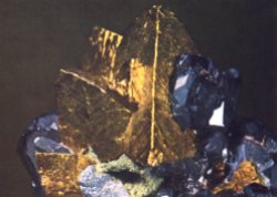 calcopirite:ovvero un composto di ferro,rame e zolfo.