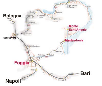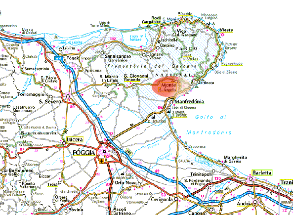 Proseguire per San Giovanni Rotondo e al 24 Km Monte Sant'Angelo .