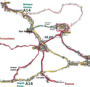 A 20 km immettersi nella A16 uscita al casello di Candela.